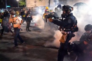 But now, when the TV cameras are begrudgingly rolling because Americans are scared out of their minds at a taste of what happens when you defund the police, in the safety of broad daylight protected by the Secret Service, Biden says Trump “may believe mouthing the words law and order makes him strong, but his failure to call on his own supporters to stop acting as an armed militia in this country shows you how weak he is.” Brave man, Joe Biden.