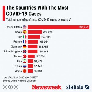 This chart, provided by Statista, shows the U.S. states with the most COVID-19 cases.