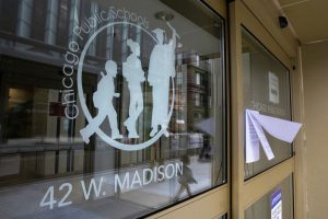A couple hundred demonstrators once again began to march, this time toward the First Unitarian Church, which had offered itself as a sanctuary during the curfew. Mitchell made her way there. A female clergy member with blond hair stood smiling with arms spread wide open. “Hello and welcome! Rest your weary souls! Fastest way to food is straight up the ramp.”