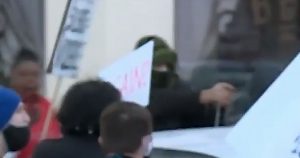 “And that means that I’m not going to be holding rallies,” Biden continued. “I am not going to be, for example, you all are here, but thank the school has put those circles around so we keep the social distancing, everybody has masks on, as soon as we finish this I’ll put my mask back on.”