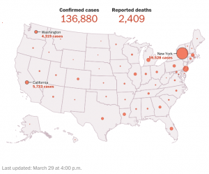 There are more than 143,000 confirmed cases of the coronavirus in the U.S., and more than 2,500 people have died from the deadly illness.