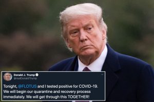 “She did test positive, I just heard about this. She tested positive. She’s a hard worker. Lot of masks, she wears masks a lot but she tested positive. Then I just went out with a test. I’ll see — you know, because we spent a lot of time — and the first lady just went out with a test also. So whether we quarantine or whether we have it, I don’t know,” Trump said during a call-in appearance on Fox News’ “Hannity.”