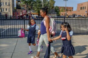 Coco Gauff returns to Magda Linette during the first round of the U.S. Open tennis tournament at the USTA Billie Jean King National Tennis Center on Monday, Aug. 30, 2021.